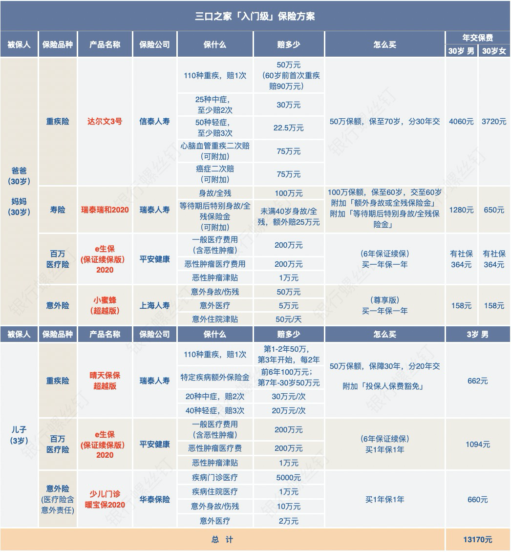 大多数朋友,都可以直接参考上文中介绍的这三个方案,来定制适合自己一家大小的保障配置。