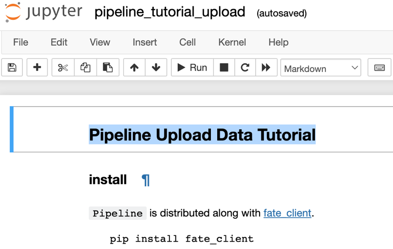 然后我们打开了jupyter notebook的UI,跑了“Pipeline Upload Data Tutorial”这个上传数据的示例Python程序。