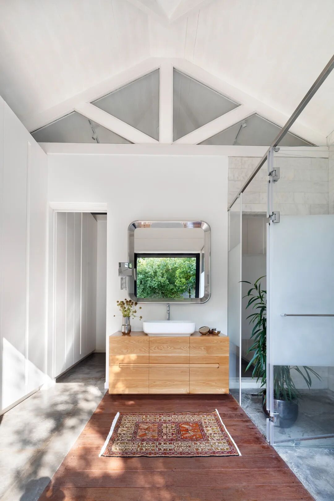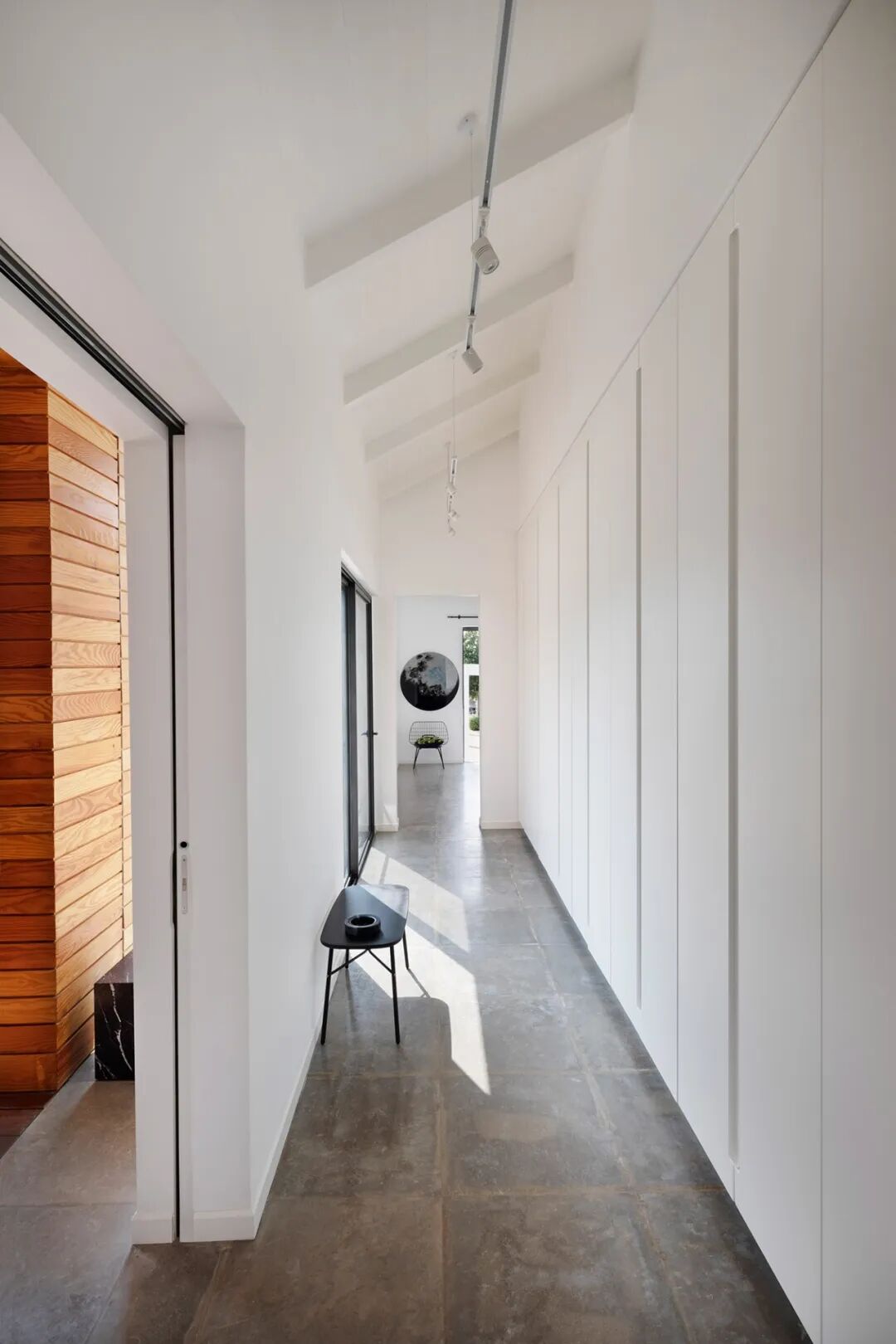 以色列的国土中,有三分之二是戈壁和荒漠。而西部靠近地中海沿岸则是平原绿洲,有充足的存水量,适合耕作和种植。以色列建筑设计师Henkin Irit和搭档Shavit Zohar受到19世纪早期风格农舍的影响,决定顺应地中海沿岸的地势,在一块形状狭长土地上,建造一所融汇当地风格的“现代农舍”。