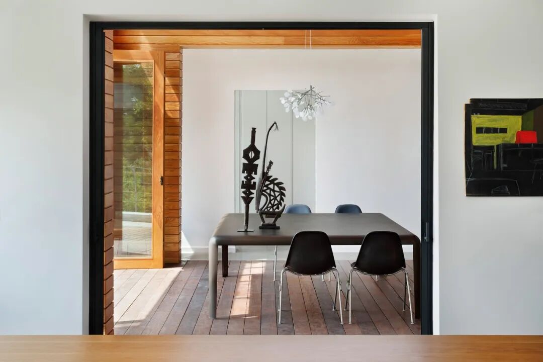 ▲室内空间由功能分区,木材包层与纯木地板相映,艺术饰品及简约家具为整体空间增添光彩。