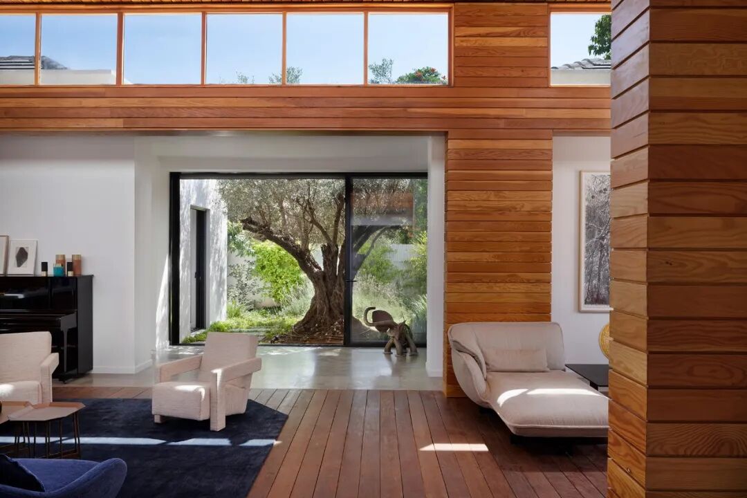 H&S:住宅位于以色列中部靠近地中海的沿海平原地带,在这个地区,大多数的房子和院子都占地上千平米,使得建筑可以拥有大片的落地窗来俯瞰周围的景色。