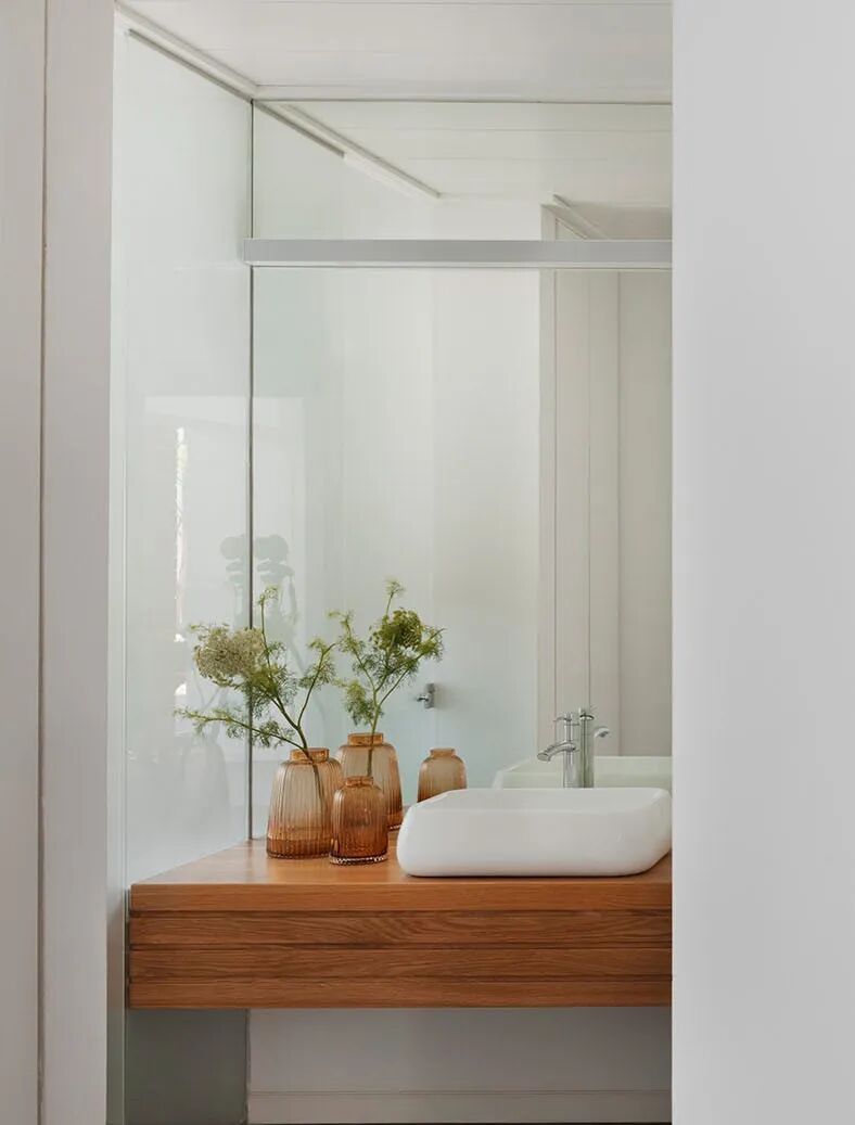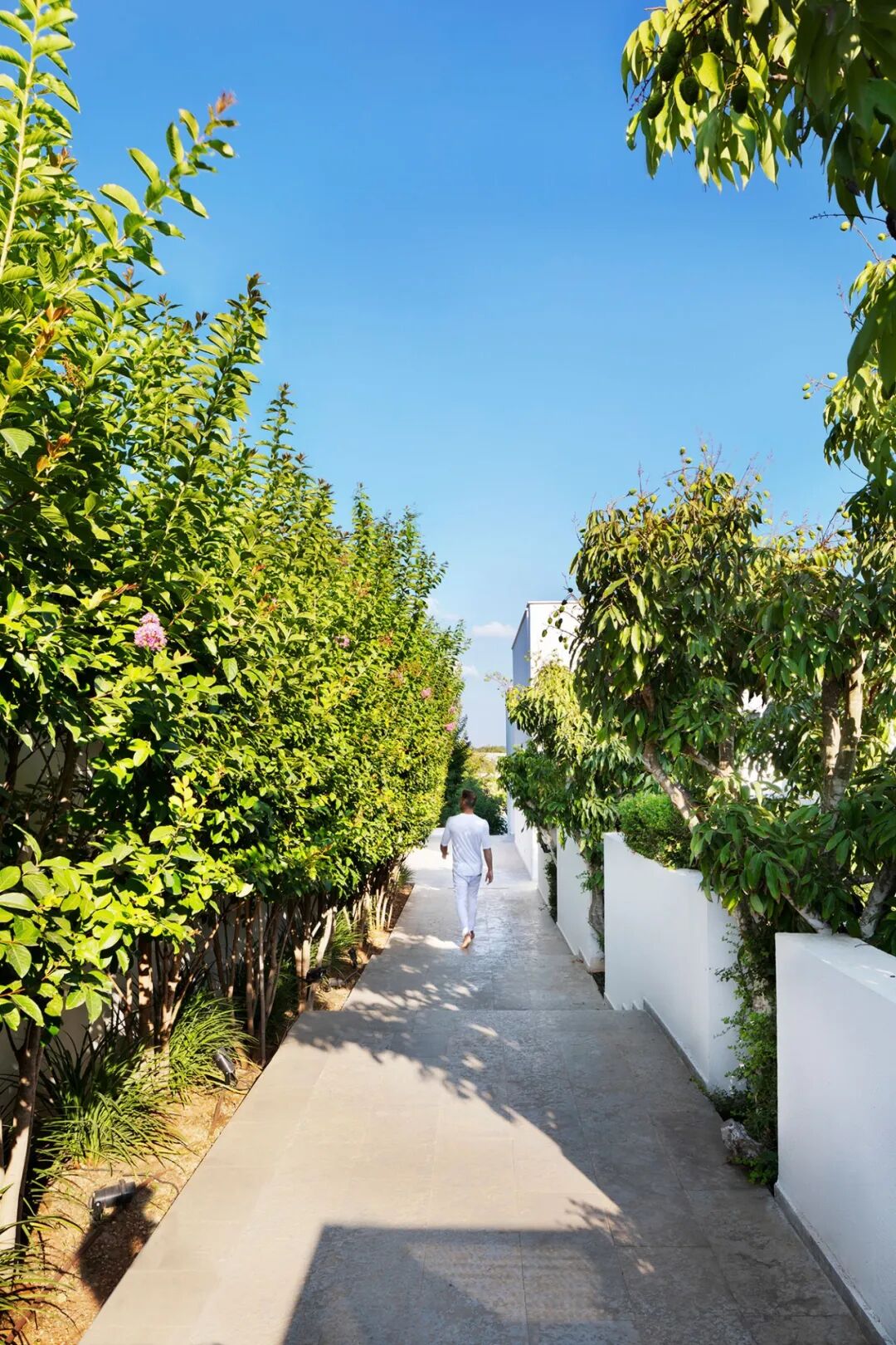 木材包层、挑高的吊顶、处处可见的绿色植物,这些都是老式农舍的特征,与大面落地窗、室内外的纯白墙壁对比强烈,使得整个住宅在原始自然的基础上更加时尚、简约,仿佛历史的厚重与现代的摩登都在此交融。住宅内部被划分为主人生活区域、儿童活动区、客房、浴室及厨房。室外区域则由前后花园两部分组成,前花园与停车区和客人步行道相邻,后花园里还有一个清凉泳池。