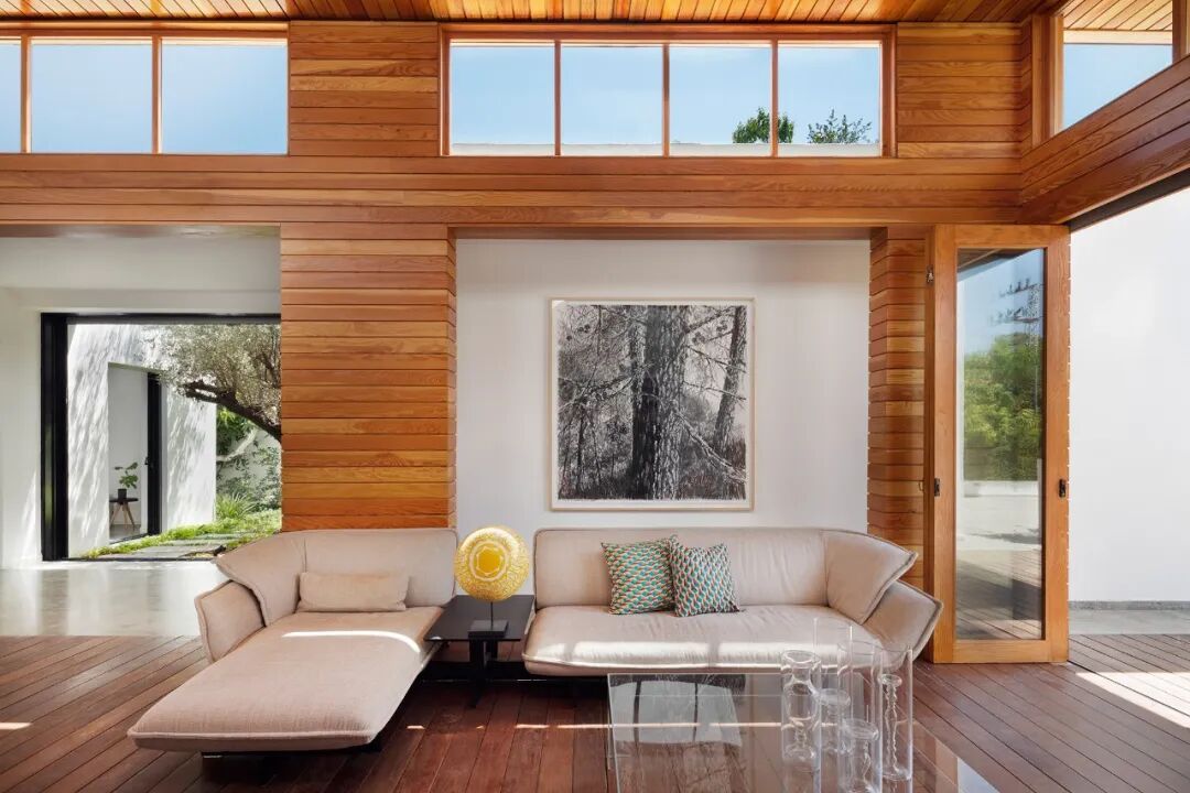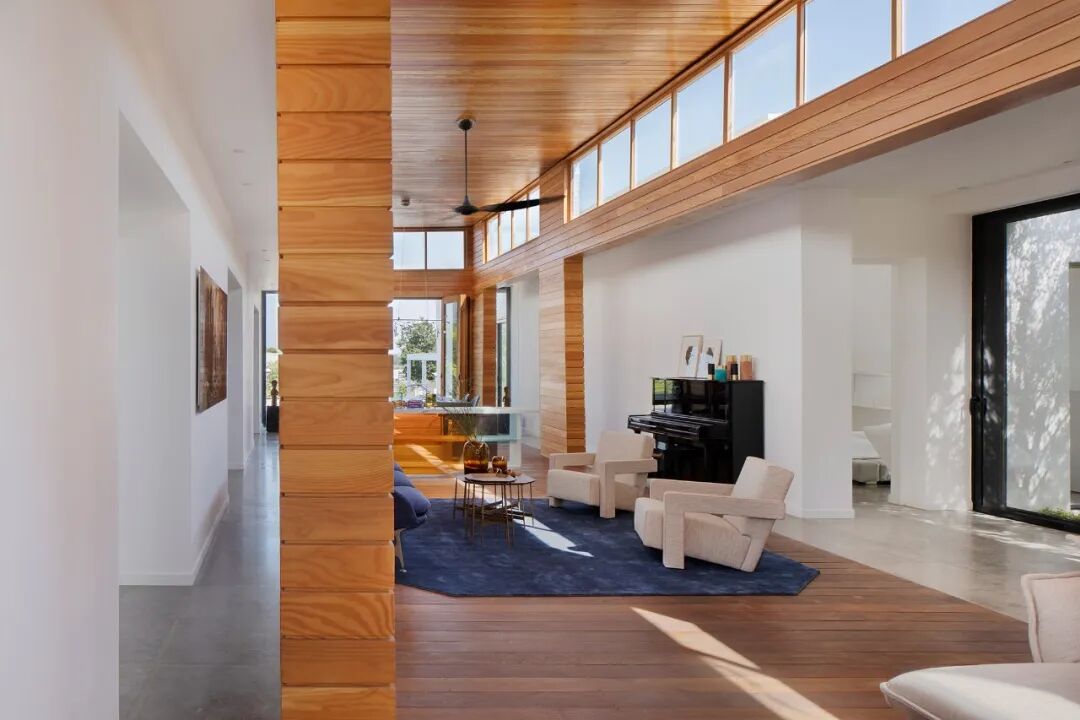 ▲客厅上方的一排窗户巧妙地引入了自然光。