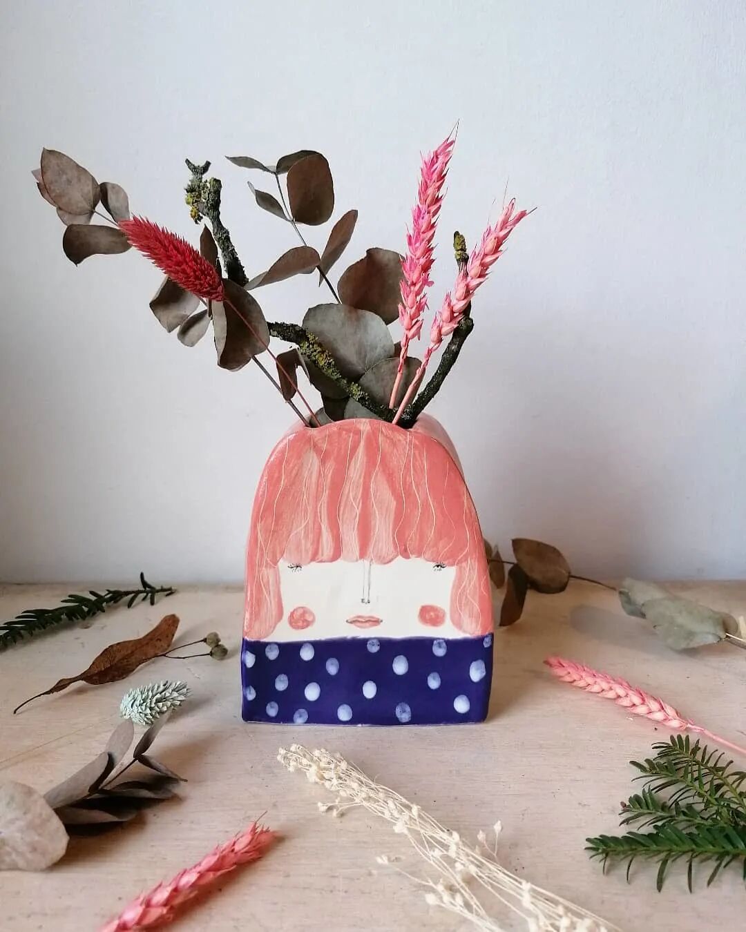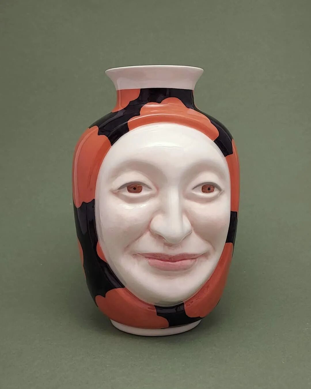 不同于Elisa的清新风格,Daniele的作品更“古怪”,颇具滑稽和幽默感,各种搞怪、滑稽的人脸出现在形态各异的瓷瓶上,让人忍俊不禁,赞叹他的幽默感和想象力。
