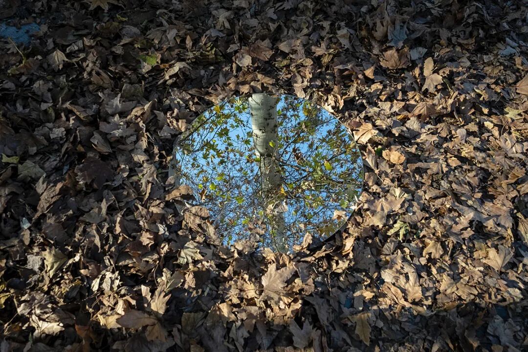 放置在自然中的镜子
