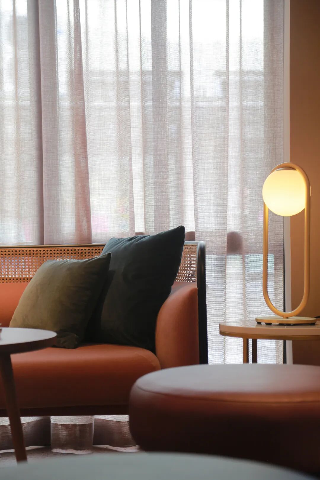 暖色系的搭配、几何图形的使用和简洁元素之间的互动,都使得房间变得越发富丽堂皇起来,于此同时,又并未丢失它原本优雅温馨的氛围。