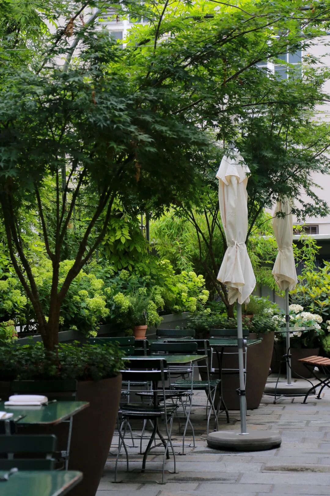 △灰绿色系的室外餐厅