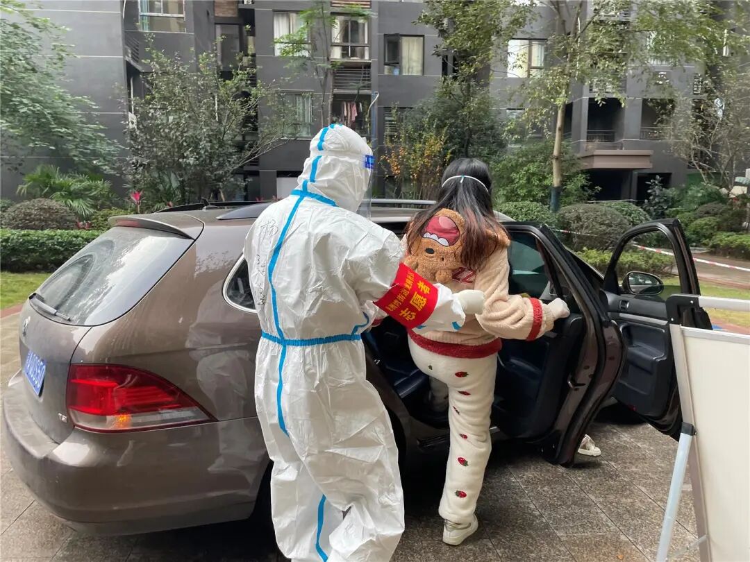 原来,小朋友认出了这位穿着防护服做核酸信息登记的人正是他的爸爸。这位“爸爸”是重庆市科学技术研究院的工作人员万鹏,也是一名党员干部。
