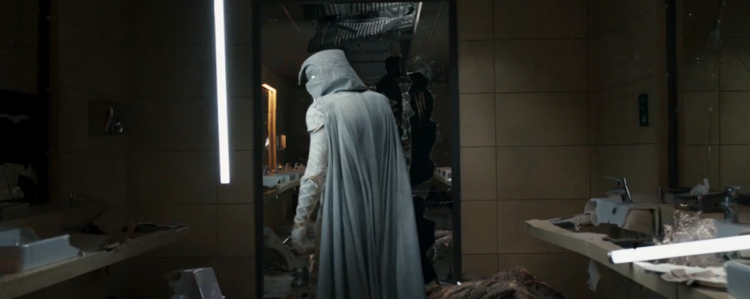 值得一提的还有多重人格的表现手法,为了契合月光骑士主题,剧集巧妙利用黑暗、灯光以及镜子。比如电梯间里上一秒还是穷追不舍的怪物、下一秒却是正常的路人,用这种虚实结合的镜头体现史蒂文的精神逐步瓦解。而镜子里的人格以及耳边源源不断的声音,也是在强化马克的存在。这样黑暗的风格其实有别于以往的漫威,相信看惯了各路“阳光少年”式英雄的粉丝也会为这样的差异感到欣喜和期待。