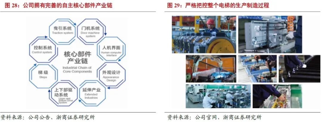 公司掌握控制柜核心技术,60%核心零部件自主制造。电梯更换理论上需要原厂授权,实际只受控制柜技术制约。外资企业一般会给控制柜加密码,部件运作需要和控制柜通讯,没有密码,企业可远程停电机,因此突破控制柜技术是抢占后市场份额的关键。目前公司已经具备更换别家控制柜的能力(有此能力的电梯企业在中国不超过8家),为后市场业务的扩张奠定基础。同时,公司60%的核心零部件自主制造,从2019年起提高控制柜的自供比例,为客户提供全生命周期价值服务的成本优势更加凸显。额外收益反哺产品研发将进一步完善自身部件配置和生产供应链,形成良性循环。
