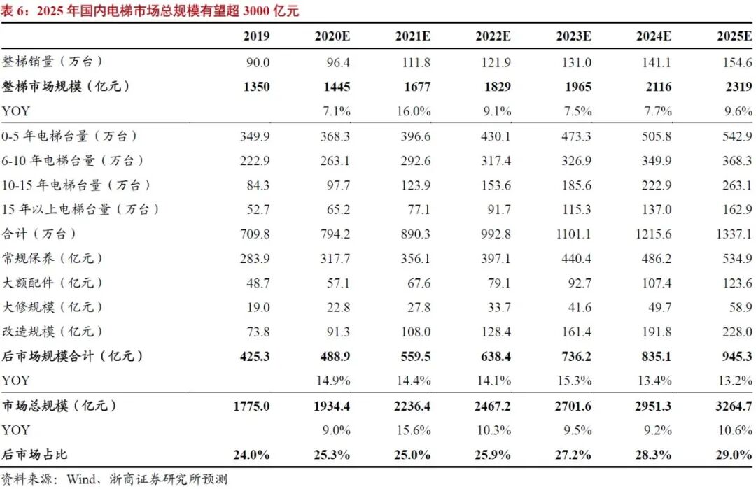 2.4.2. 2025年国内电梯市场总规模有望超3000亿元,后市场将占三成
