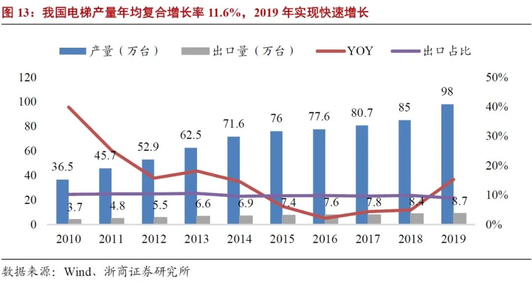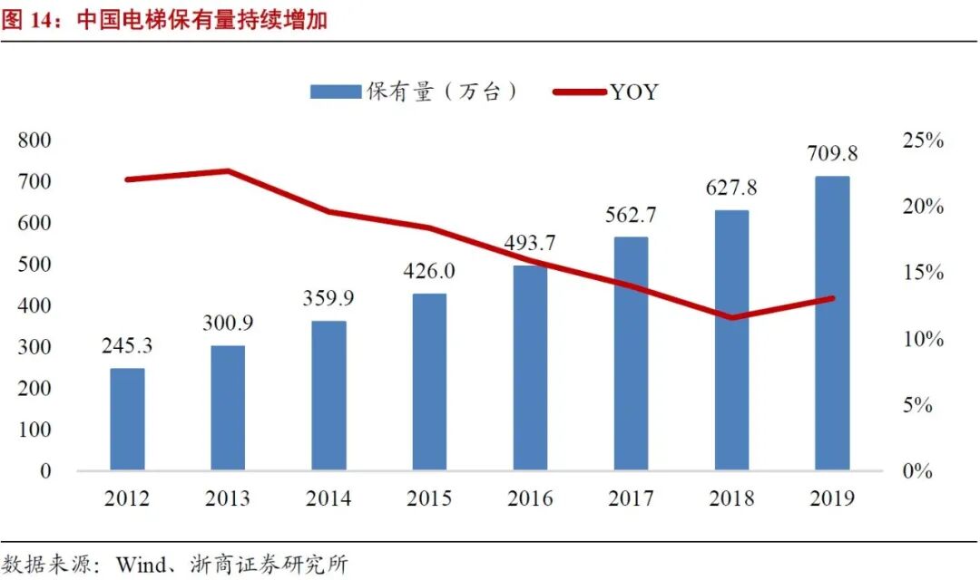 2. 国内电梯整机市场有望维持较高增速,维保后市场潜力巨大