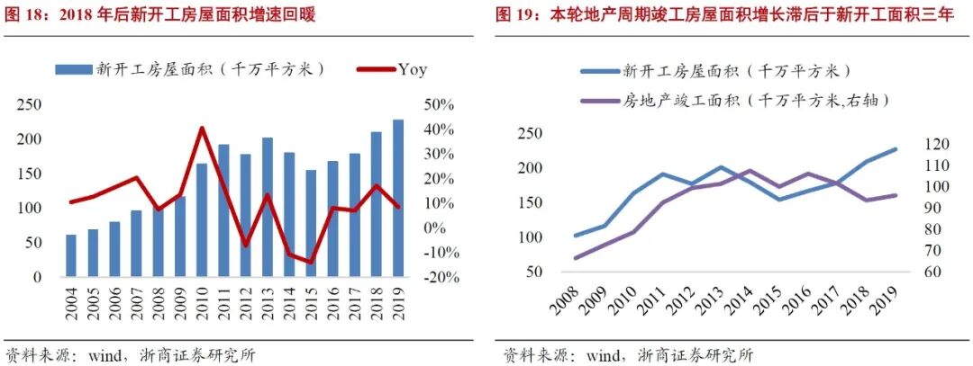 3)房地产竣工面积增速依据开工面积增速进行假设:根据2.2.1分析,房地产竣工面积走势约迟滞开工面积三年,且错开三年后竣工增速/开工增速比例系数多在0.3-1之间。2020年1-10月份,竣工面积累计同比-9.2%,仅有4.9亿平方米,但2019年11、12月份环比增速极高,据此乐观假设2020年房地产竣工面积可达2019年水平,为9.6亿平方米。基于2020年竣工面积基数低,且明年很有可能迎来竣工潮,2021年、2022年分别给予0.6、0.4的系数,2023-2025年假设房地产竣工面积增速分别为2.5%、2.5%、3%。