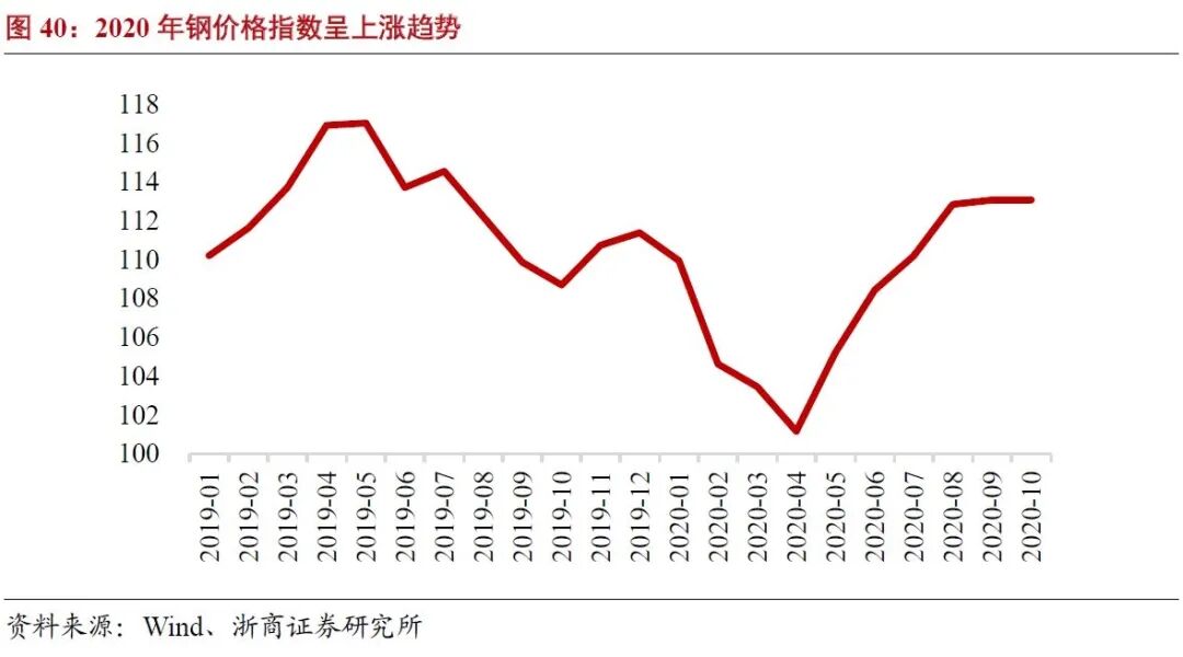 我们认为1)地产政策风险导致电梯需求下滑;2)钢材价格大幅上涨;3)电梯安全事故;4)公司市占率提升缓慢为公司主要的风险因素,其中钢材价格大幅上涨可能性较大,且2020年钢价格指数呈上涨趋势,对公司的影响较为关键,在此作以简要分析。
