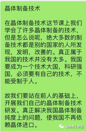 (2)多措并举的教学方法。讲授知识点,让学生具有参与感和获得感。讨论式教学方式,调动学生积极性。在课堂上由学生进行陈述,课后以小组形式收集和整理晶体制备相关的文献资料(ppt形式),并解答由同学、老师所提出的相关科学问题,实现团队成员之间的有效沟通和协作。