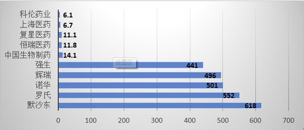 ▲中外主要医药企业研发投入对比(2016年度,亿元)(资料来源:美国《制药经理人》,美元汇率1:6.3325人民币)