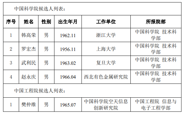 今年中国科学院院士增选总名额为73名,中国工程院院士增选总名额不超过88名。中国材料研究学会拟向中国科协推选5位两院院士候选人、中国硅酸盐学会拟推选5位、中国食品科学技术学会拟推选4位、中国石油学会拟推选11位。