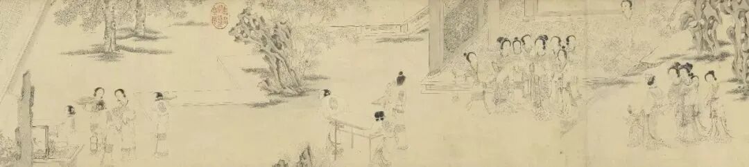 76位宫中女子三五成群,或坐或立,仪态端庄,举止娴淑,在农历七月初七夜晚,在宫中庭院里举办一场乞巧活动。国博馆藏近四米长卷的《汉宫乞巧图》,带你一探七夕秘境。