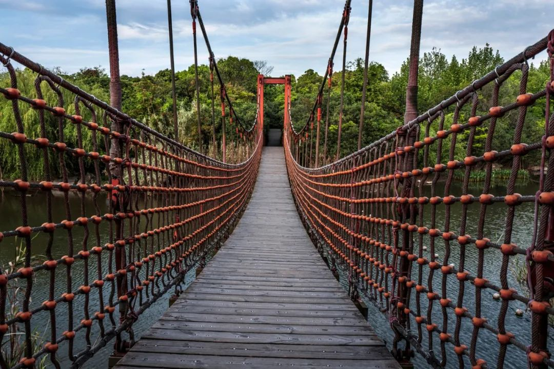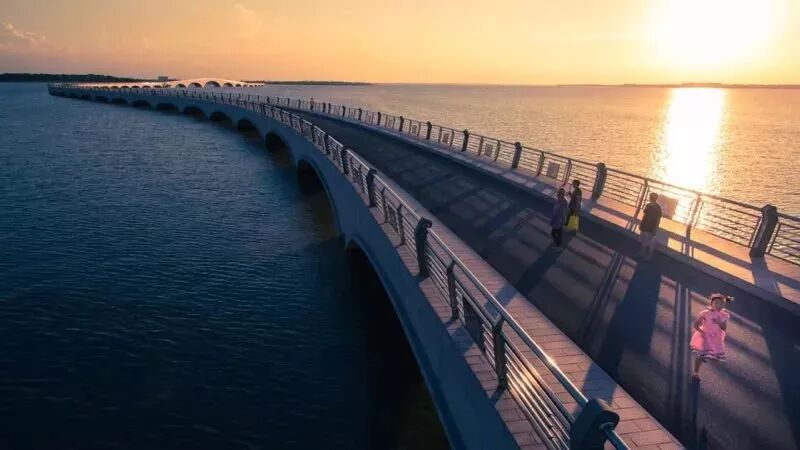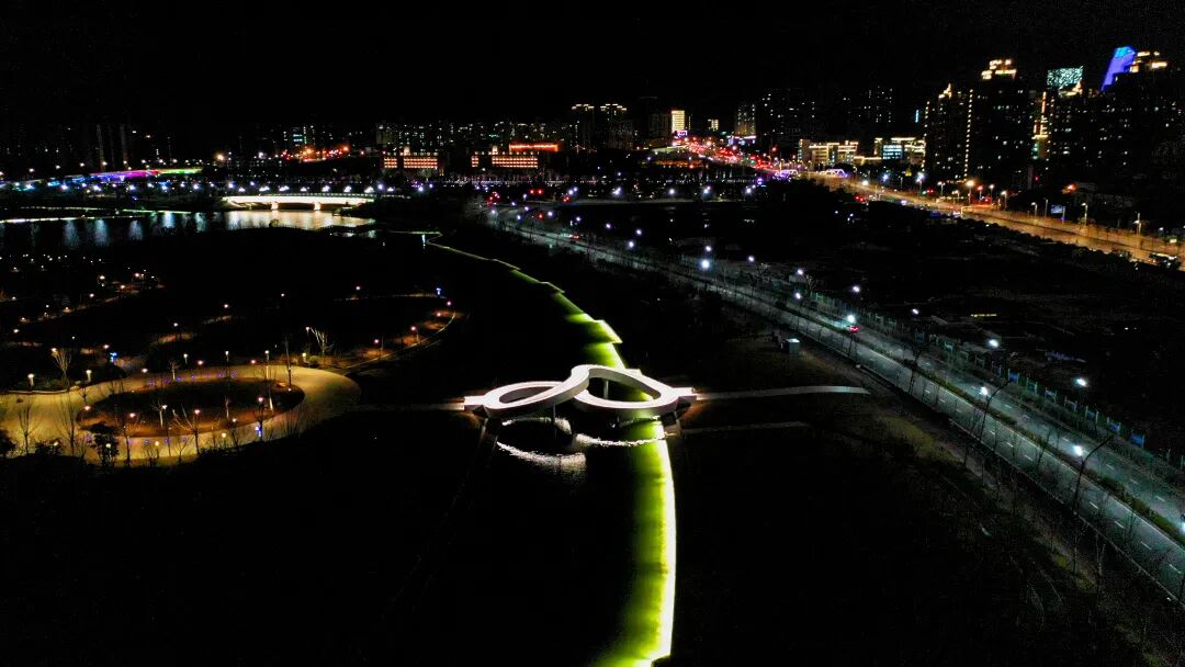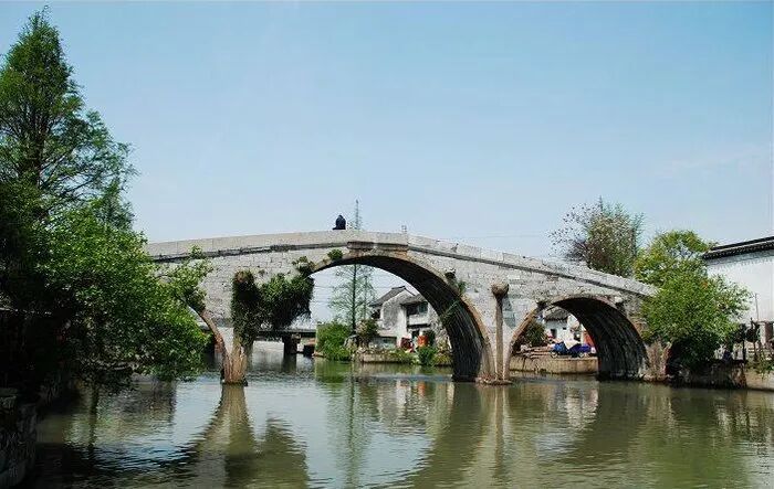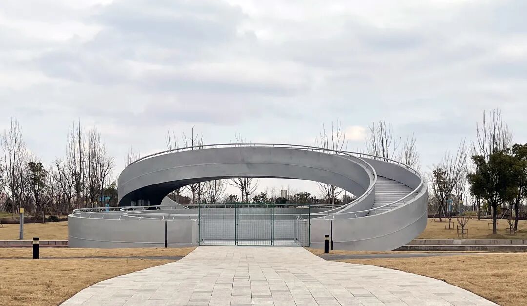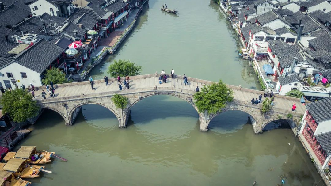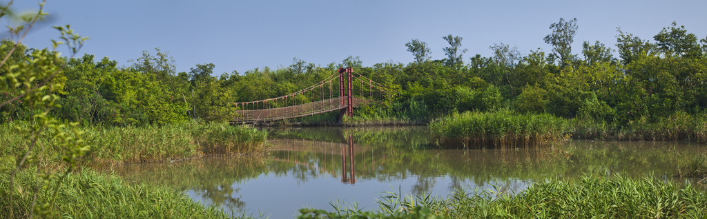 一座宛如缎带的慢行桥飞卧在元荡湖上。
