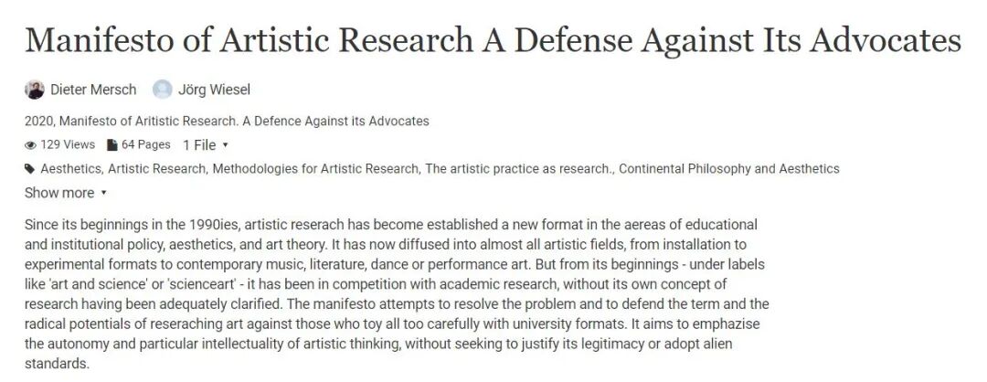 (Manifesto of Artistic Research A Defense Against Its Advocates截图)