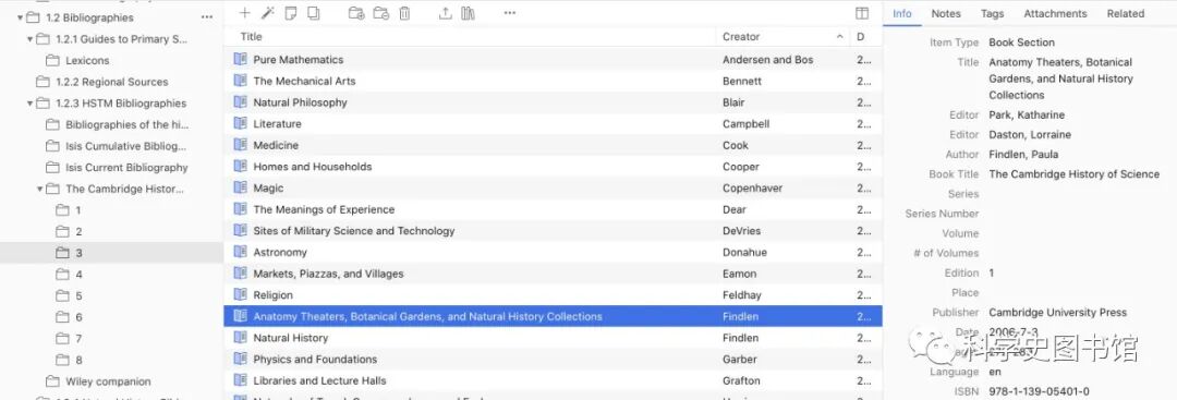 科学仪器实在是一个非常好玩的领域,尤其是当你的系里一进门就有个博物馆的时候。我们系里关于科学仪器的research guide是非常好的,我把它放在了2.3.0 General Overviews 0 Sources一栏,看着这篇guide基本就可以入门重要文献。同时除了OB以外,我还收录了Scientific Instrument Commission Bibliography 的所有在线电子版,双击条目就可以获取,在Zotero客户端直接批量find available pdf也可以。这个书架的general overview中我挑选了一些关键问题列出来,例如艺术与科学中的仪器、科学仪器的收藏、纸质仪器、仪器的流通等,许多收在这里的期刊也值得一读,在此不一一赘述。