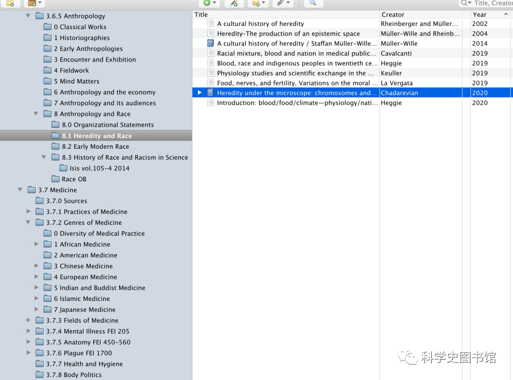 8.3 History of Race and Racism in Science 主要关注科学史中的种族,我同时也收录了前一阵推送的Isis做的种族主题bibliography, 使用Zotero客户端就可以直接全选批量下载PDF.