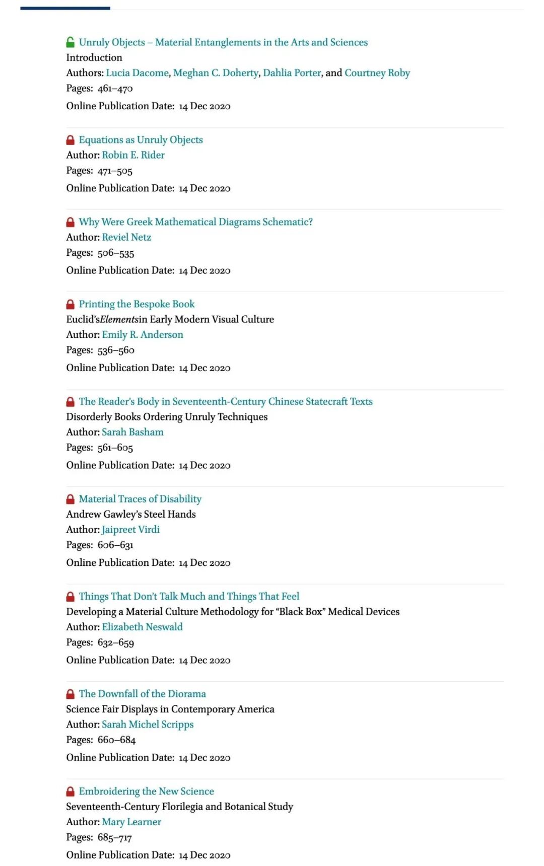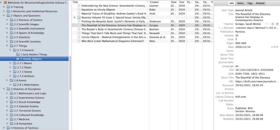 2020年12月,Journal of the Material and Visual发布特刊《不羁之物:艺术与科学中的物质纠缠(Unruly Objects: Material Entanglements in the Arts and Sciences)》。特刊源于2017年10月12-15日在费城举办的“跨学科的文献学( Bibliography Across the Disciplines)”会议的“跨学科的不羁之物(unruly objects across the disciplines)”工作坊。这场对话跨越艺术史、古典文学、科技史、医学史、文学史和媒介研究等领域,8位来自不同学科和机构的学者共同探讨了不同时空中物质性在艺术、医学、科学和技术知识的生产和传播中的重要作用。特刊已经收入图书馆2.7.0 General分类下。