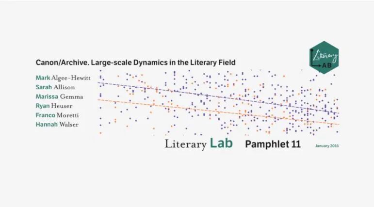 文学实验室合著的研究成果在遭到学术期刊的拒绝后一律以“pamphlet“的方式公开发表在网上。在2016发布的Canon/Archive. Large-scale Dynamics in the Literary Field中,他们将档案而非经典视作文学研究的主要对象。这里的档案是“被图书馆或其他机构保存的已出版文学作品”,被视为一种背景材料。