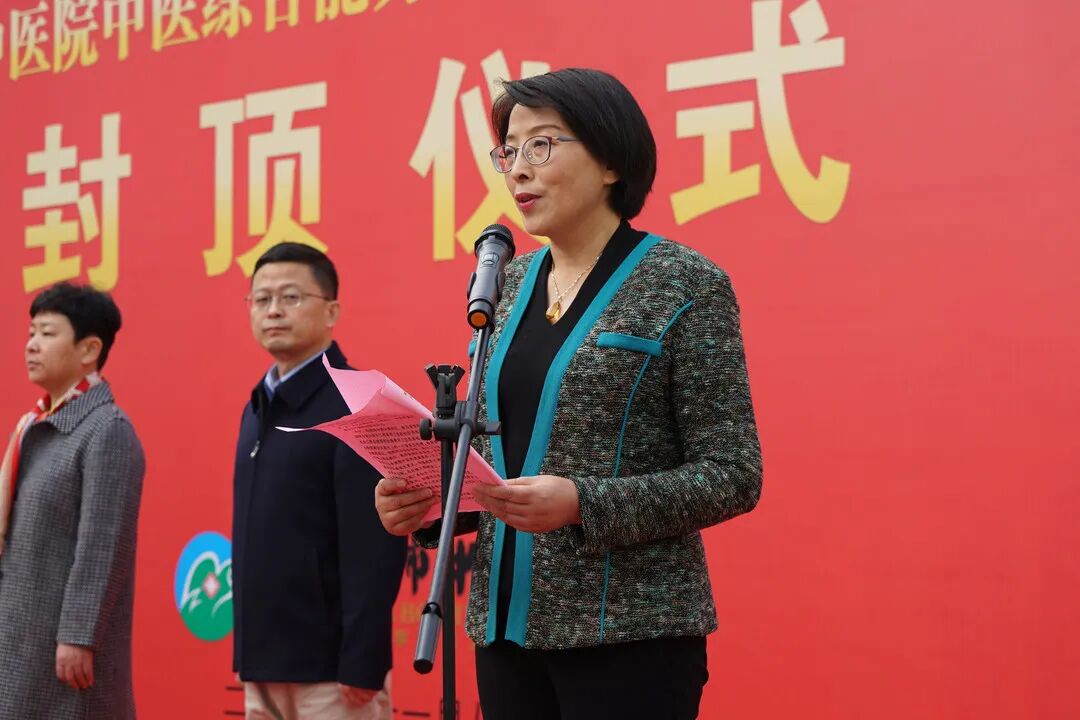 上午9时18分,连云港市中医院中医综合能力提升工程——检验综合楼封顶仪式正式开始。市卫健委副主任刘蓉、市财政局副局长蒋敏、市住建局副局长王华、市发改委四级调研员宋小康以及市政府工程建设管理中心领导,市中医院领导班子全体成员、职工代表,检验综合楼工程设计单位、施工单位以及监理单位代表参加封顶仪式。仪式由市中医院党委书记李建军主持。