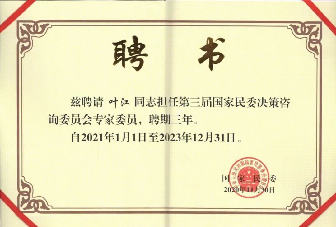 图为叶江研究员的聘书