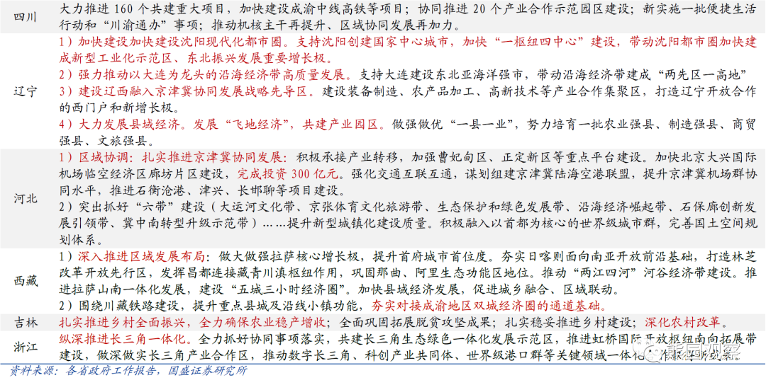 >此外,广东、福建、浙江三省均提及要警惕、妥善处置地产风险,应是与当地部分房企暴雷有关,也指向今年地产政策应是稳字当头。