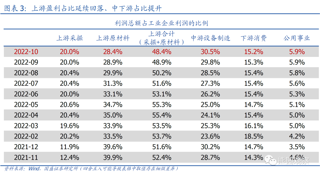 本文节选自国盛证券研究所已于2022年11月27日发布的报告《中下游有望成明年亮点—10月企业利润的5大信号》,具体内容请详见相关报告。