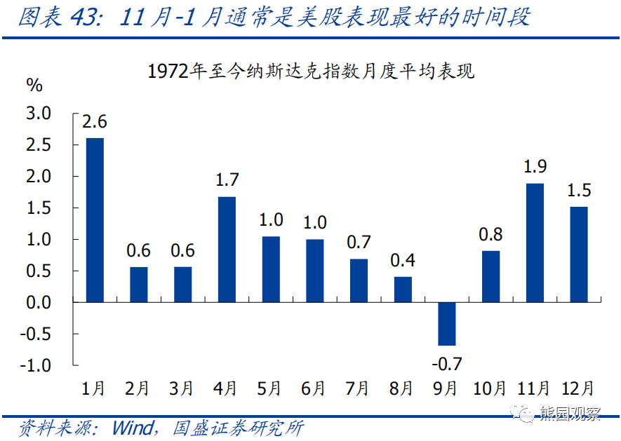 前期报告中我们曾指出,历史上美国温和衰退时期,标普500指数最大跌幅通常不超过30%,而本轮标普500指数在2022年初触顶,之后到10月中旬的最大跌幅为25%,已达到温和衰退该有的跌幅水平。此外,美股有明显的季节性规律,8月和9月往往是表现最差的时间段,而11月至次年1月往往是表现最好的时间段。实际上,10月中旬以来,标普500指数已累计反弹了14%左右。基于前文中对美国衰退节奏的判断,并结合历史规律,我们认为后续美股走势可能分为三个阶段:一是现在到2023年1月,美股阶段性反弹;二是2023年2月到年中,美股再度下跌;三是2023年下半年,美股将重回上涨趋势。![]()