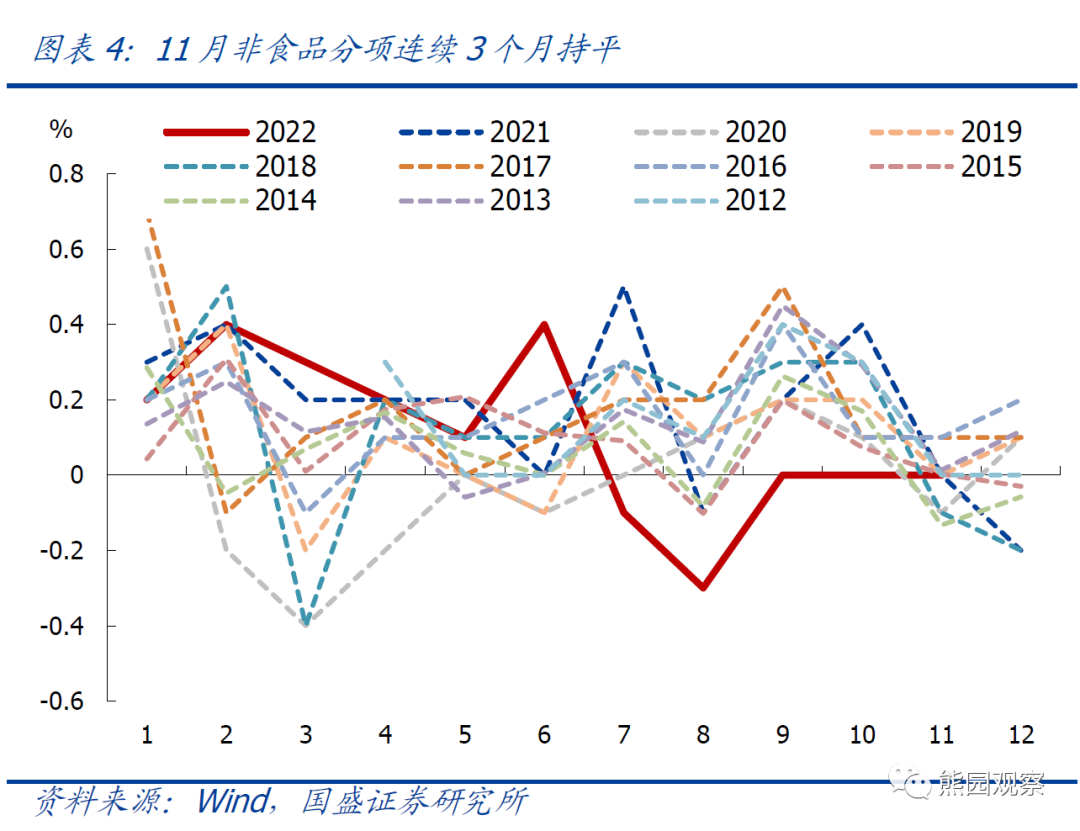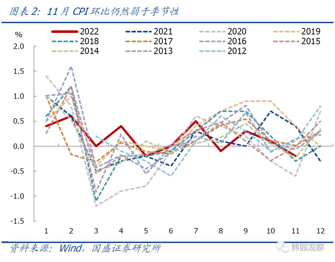 本文节选自国盛证券研究所已于2022年12月9日发布的报告《通胀持续走弱,央行为何担心升温?—兼评11月物价》,具体内容请详见相关报告。