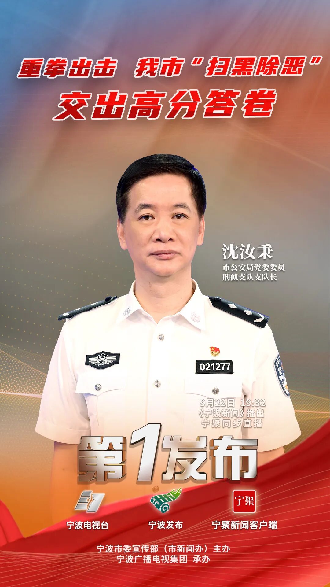 黑恶势力是群众痛恨的社会毒瘤,也是群众关心的热点问题,坚持有黑必扫、除恶务尽是我们的一贯方针。我市常态化扫黑除恶工作进展情况如何,群众非常关心。今晚,由宁波市人民政府新闻办公室主办的宁波电视台《第1发布》专栏,邀请市公安局党委委员、刑侦支队支队长沈汝秉,介绍常态化扫黑除恶斗争开展以来,我市公安机关在扫黑除恶方面取得了哪些成效。