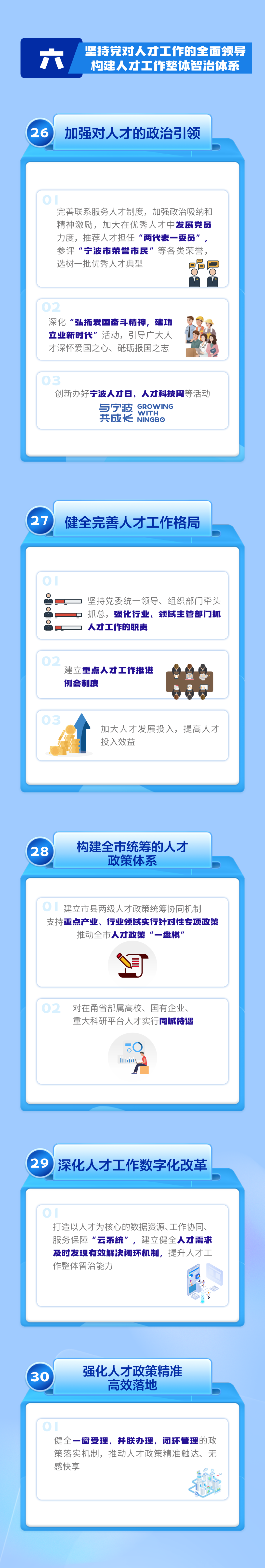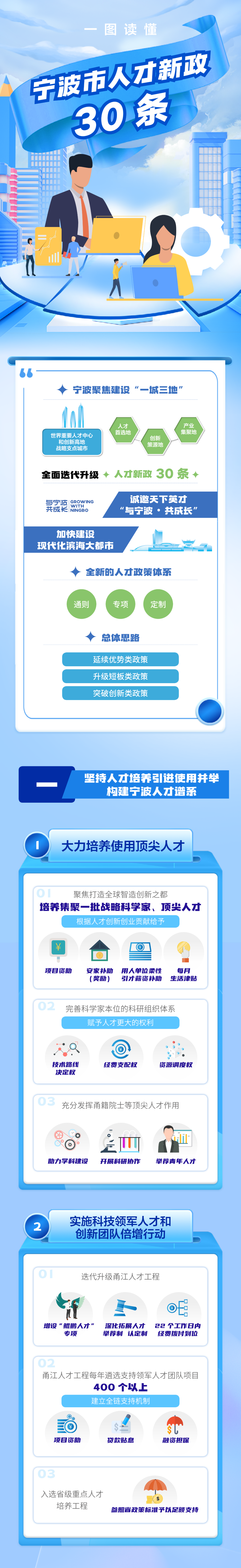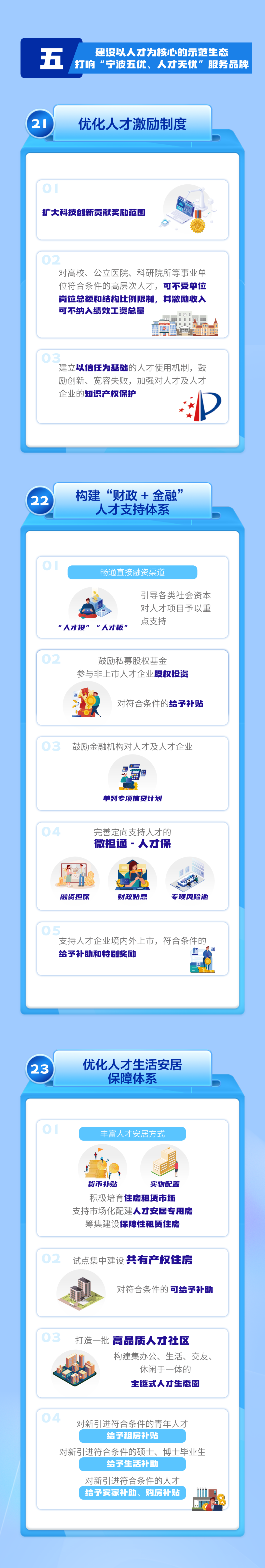 三是延续实施类,主要包括顶尖人才项目支持、基础人才购房补贴、技能人才岗位补贴、“财政+金融”人才支持等近年来深入人心、有明显宁波辨识度的举措。通过一揽子政策的“扬优势、补短板、填空白”,确保人才在甬获得感得以全面提升。