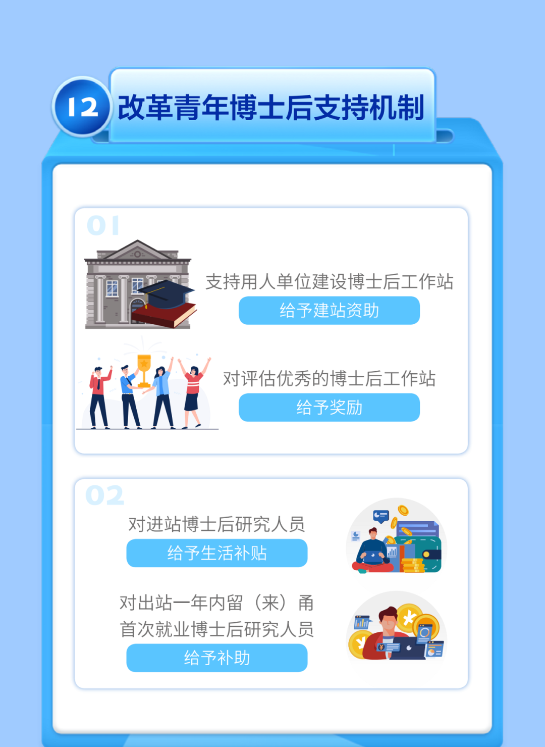 二是优化升级类,主要包括扩容甬江人才工程并增设“鲲鹏人才”专项,提高海外工程师年薪补助,对市外来甬博士后给予补助,对高层次人才科技创新贡献奖励予以扩面,以及对省部属高校、国有企业和科研平台予以“同城待遇”等举措。