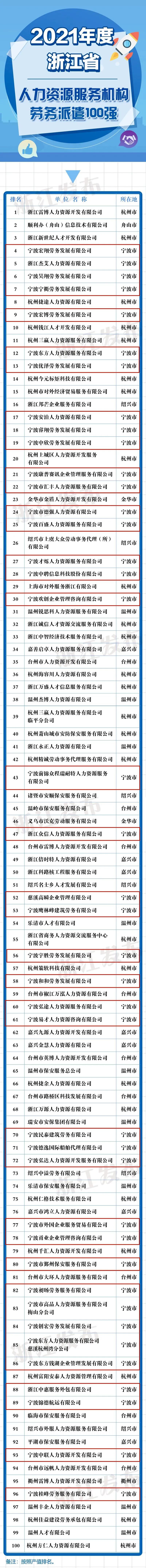 同时公布了《2021年度浙江省人力资源服务机构综合100强》等10份榜单。这是自2019年以来,浙江第4次发布人力资源服务业榜单。