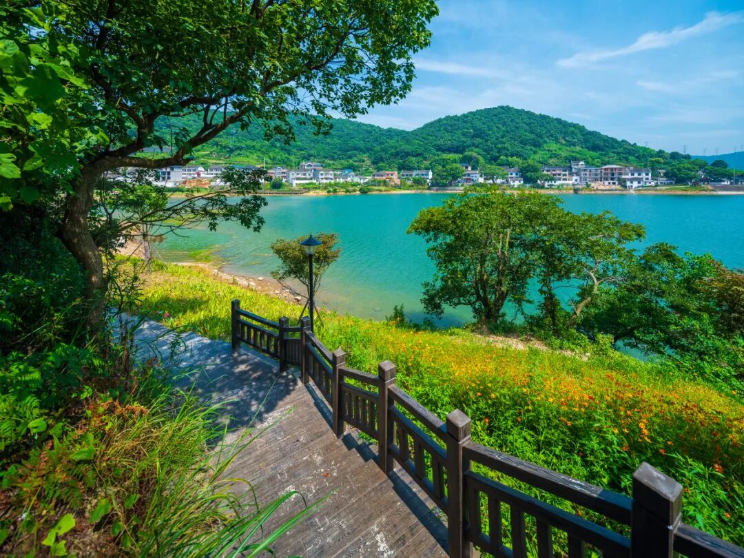 狮子山公园绿道全长3.8公里,位于江北区慈城镇,紧邻半浦、慈城、保国寺等历史文化点,充分发挥现有山、湖、田园、乡村等现有资源作用,设置康体养生登山步道与滨水休闲环湖步道,形成完整便捷的慢行环线系统,是集景观、生态、运动、休闲、历史文化于一体的城市滨水生态景观绿廊。九龙湖四湖连珠绿道位于九龙湖镇,起自汶溪村,终于香山路,全长10.2公里,串联了孔雀湖、天鹅湖、凤凰湖及九龙湖,从天空俯瞰,如同一条翡翠丝带,串联四颗闪亮的明珠。该绿道充分利用山水等自然资源,沿线种植杨梅、蜜桔、竹子等,串联汶溪八部庙戏台、思源亭等保护性文物,又有临湖书吧、精灵谷丛林穿越、凯鲁亚克精致露营等生态休闲场所,打造了市民慢生活、亲山水、品文化的都市健康休闲廊道。紫薇岙游步道位于郭巨街道福民村紫薇岙水库沿岸,全长2.3公里,沿水库堤顶设置慢行道,沿途布置景观节点、增设廊亭、标识标牌,打造以“烟笼层林千重翠,霜染秋叶万树金;层林尽染千丈画,红黄翠绿一溪诗”为意境的“景观漫步道”,让人们在运动的同时感受四季变换的美。