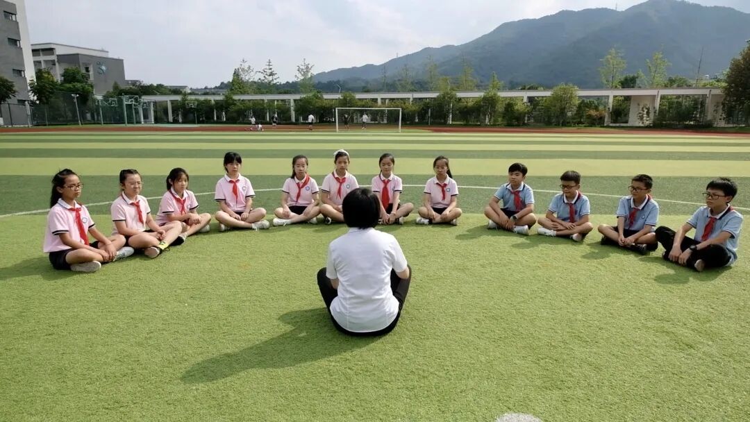 9月16日下午,海曙区章水镇中心小学操场一角,“小红缨”团队的成员们正在听来自宁波樟村四明山革命烈士陵园的工作人员分享如何做好一名合格的宣讲员。