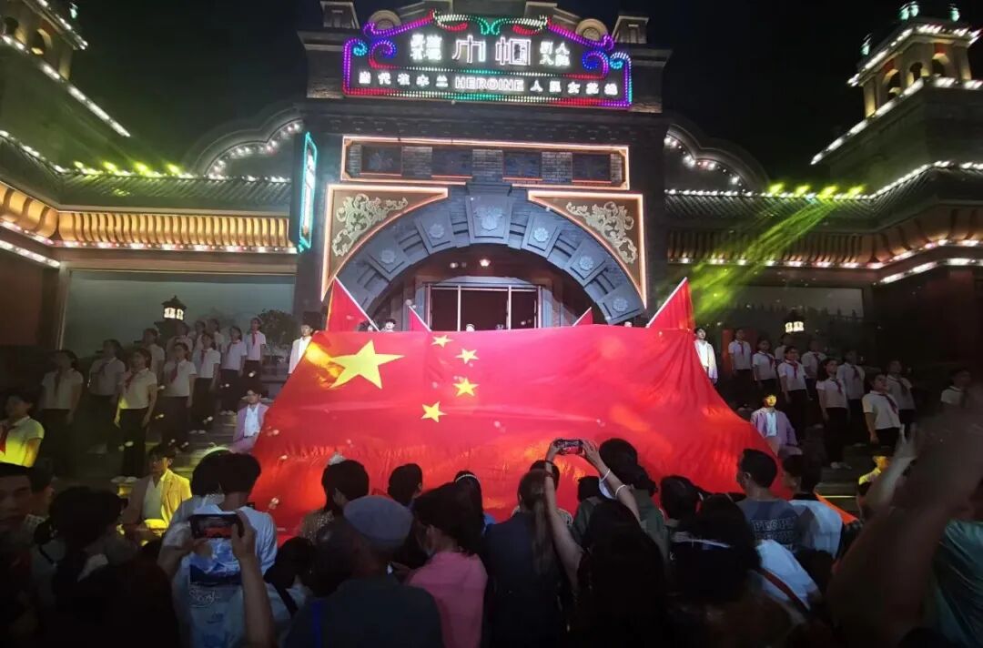 在国庆期间,主打红色文化的东方欲晓则推出“复古潮玩节”主题活动,游客不仅可以欣赏爱国情怀快闪演出及舞狮、杂技等民俗特色表演,还可以在华灯初上的上海街参与致敬祖国快闪秀,一起唱响红歌。此外,盛世无人机夜光秀与国庆限定光影烟花秀也点亮璀璨夜空。