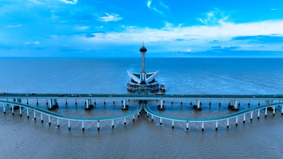 海天一洲观光塔高145.6米,游客可以乘坐电梯可直通塔顶,站在全景落地玻璃上,俯瞰波涛汹涌的杭州湾,倾听海浪的澎湃起伏,远眺气势恢宏的跨海玉龙,饱览“大鹏展翅”的雄姿。
