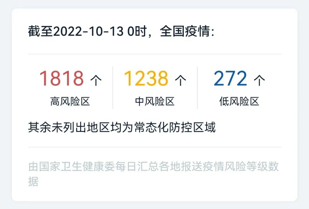 10月12日0-24时,11个市报告新增本土阳性3例,均为集中隔离点检出,均已落实管控措施。