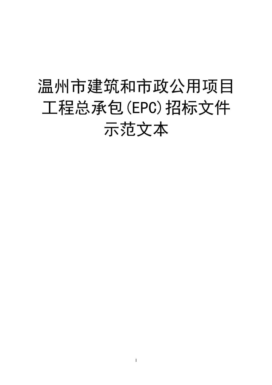 《温州市建筑和市政公用项目工程总承包(EPC)招标文件示范文本(2019年版)》