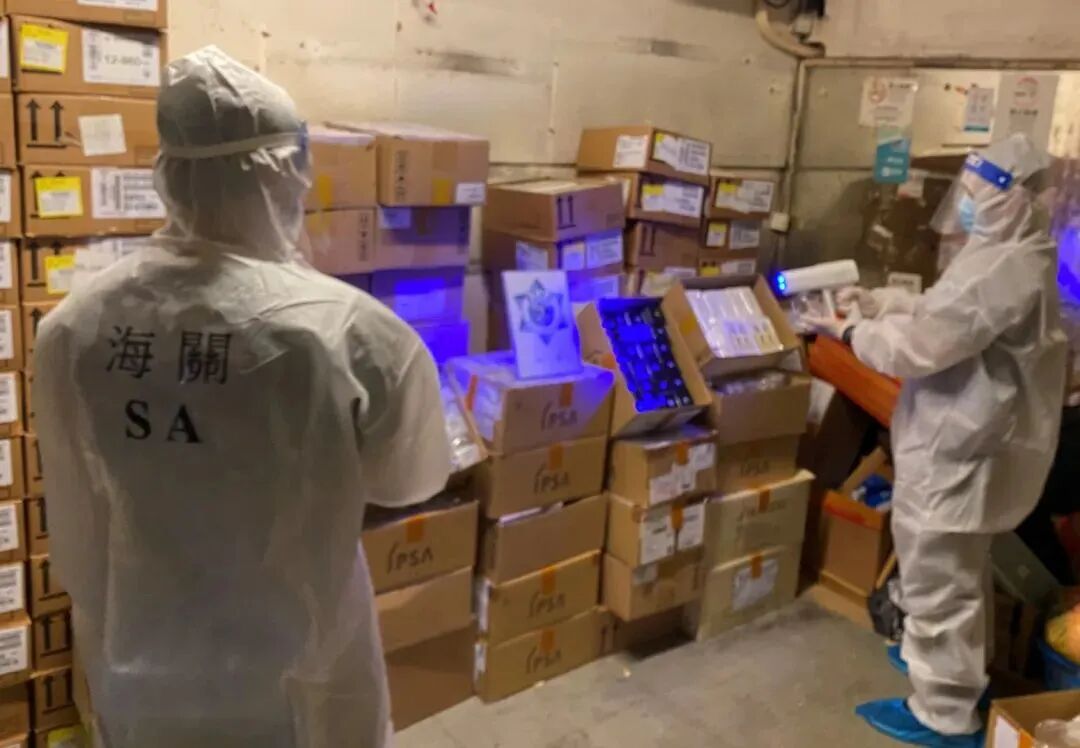 海关见时机成熟,即时采取行动,在目标店铺内查获一名男现场负责人及一名女“水客”,搜获美妆产品约5,000件,总值约110万澳门元,全数不具备进出口申报文件及来源证明。为减低新冠病毒的传播风险,海关执行防疫指引,对涉案货物进行消毒。