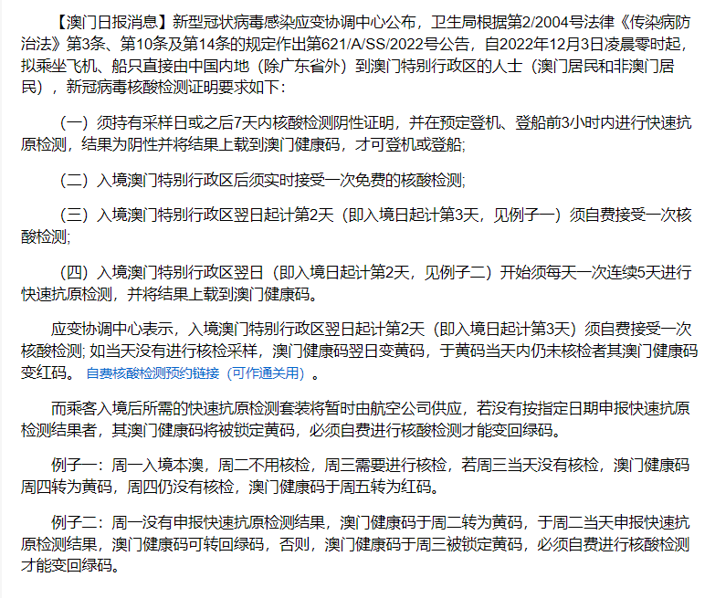 全国低风险地区到澳门免隔离,但如果是从中高风险地区/街道前往澳门,容易被海关劝返。