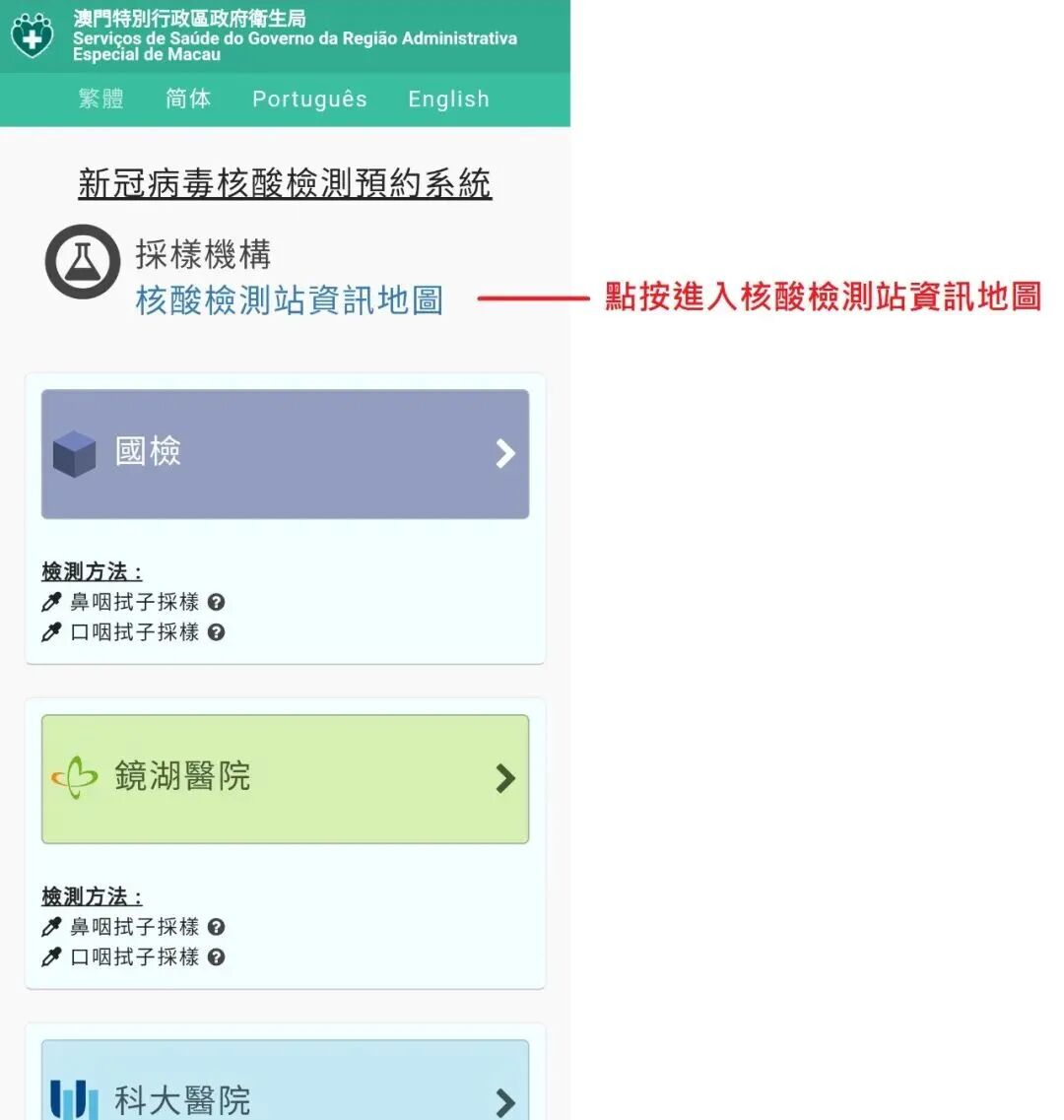 https://eservice.ssm.gov.mo/allpeoplernatestbook ,检测结果不可用作通关;