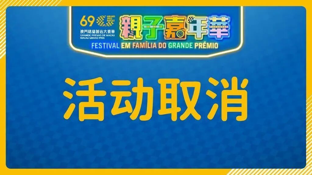 为配合特区政府疫情防控工作,原定于本年11月5日至6日在塔石广场举行的「第69届澳门格兰披治大赛车 - 亲子嘉年华」活动取消。