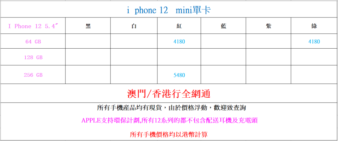 ★手机报价均为港币现金优惠价