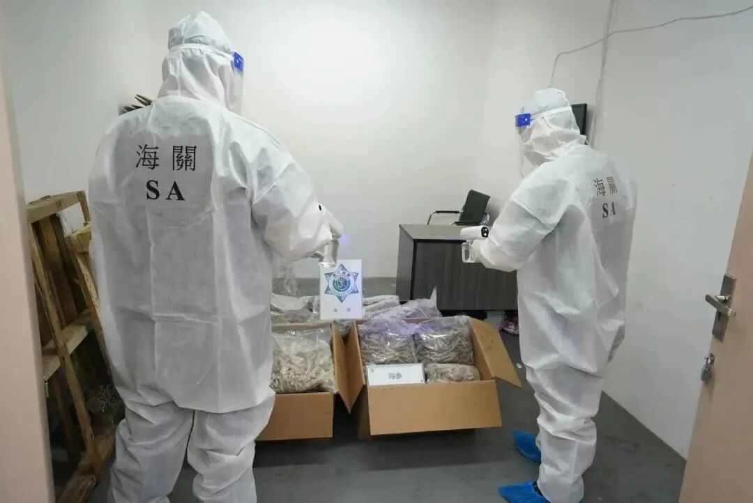 海关见时机成熟,即时对目标单位采取行动,在现场截获1名男性负责人,并查获水客带货纪录文件,以及干海参140公斤,估值约为35万澳门元。 由于相关货物不具备进出口申报文件及来源证明,为减低新冠病毒传播的风险,海关根据防疫指引,对查获的货物进行消毒。